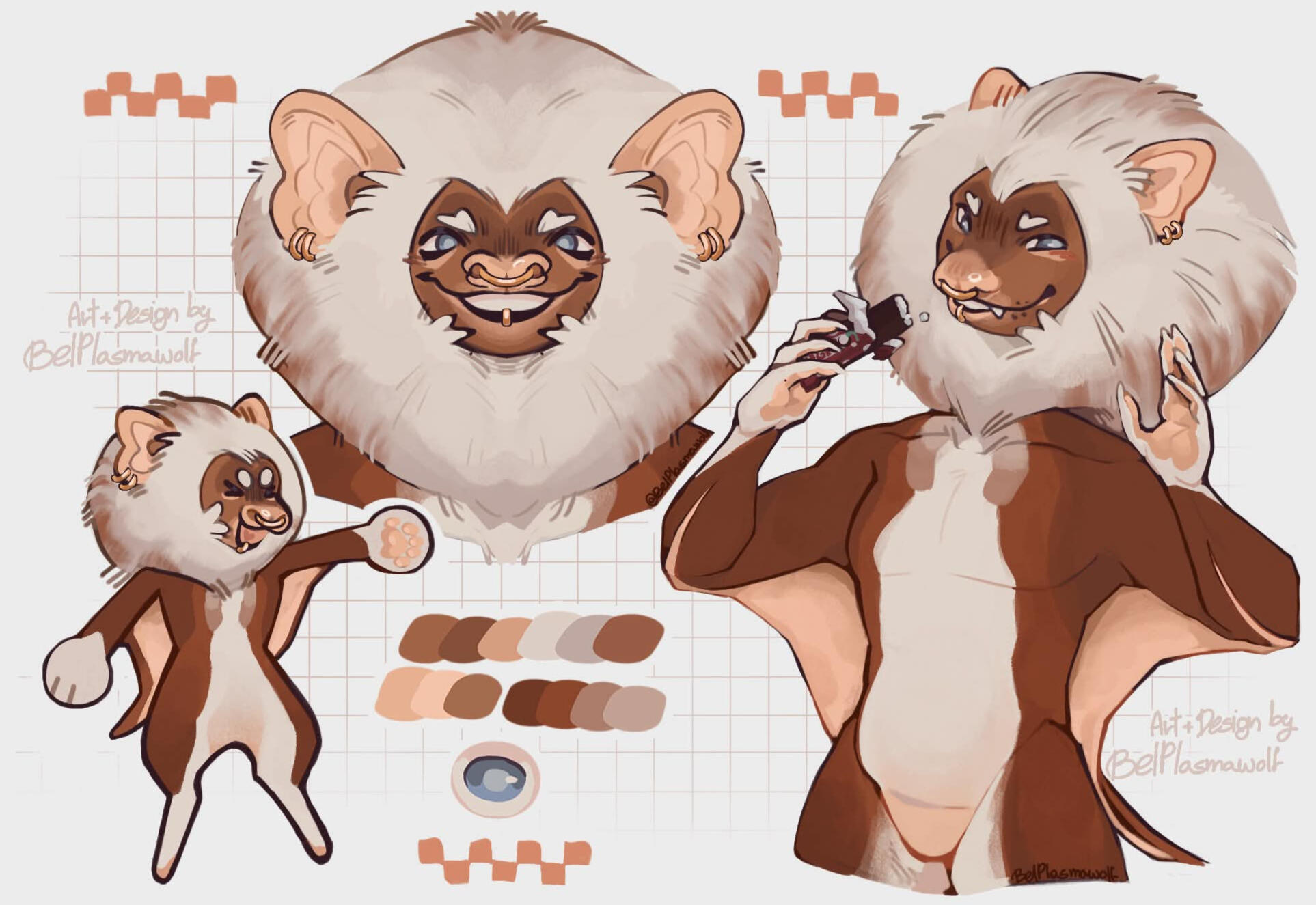 Simple: 1 fullbody, 1 bust/head, 1 chibi and info
