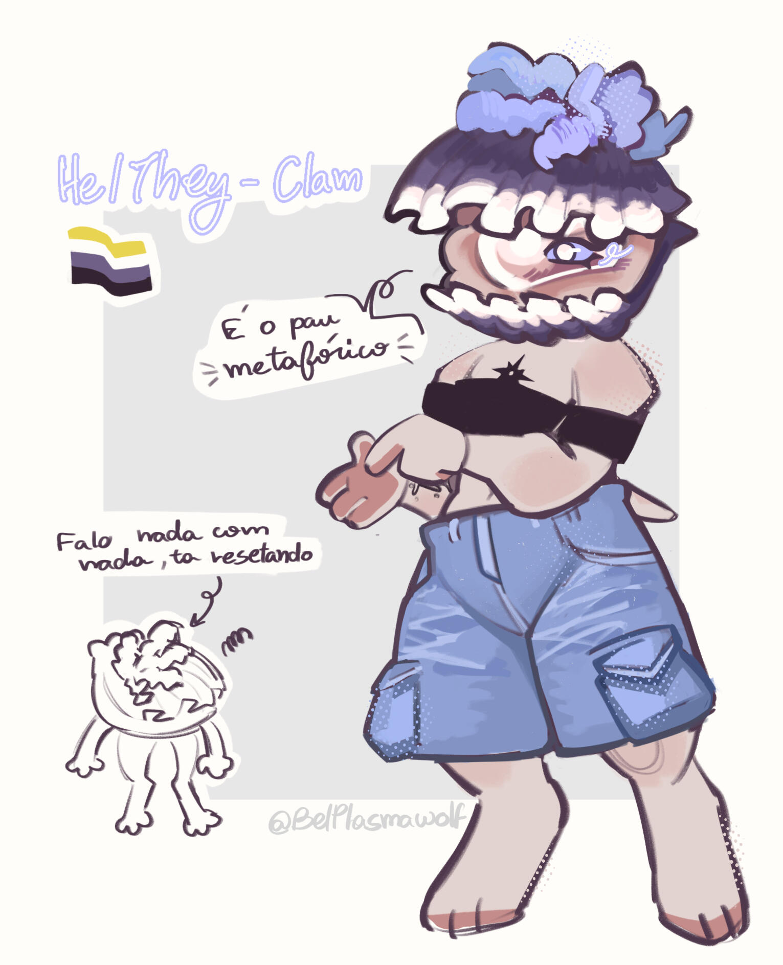 Simples: 1 corpo todo, 1 busto/icon, 1 chibi e info